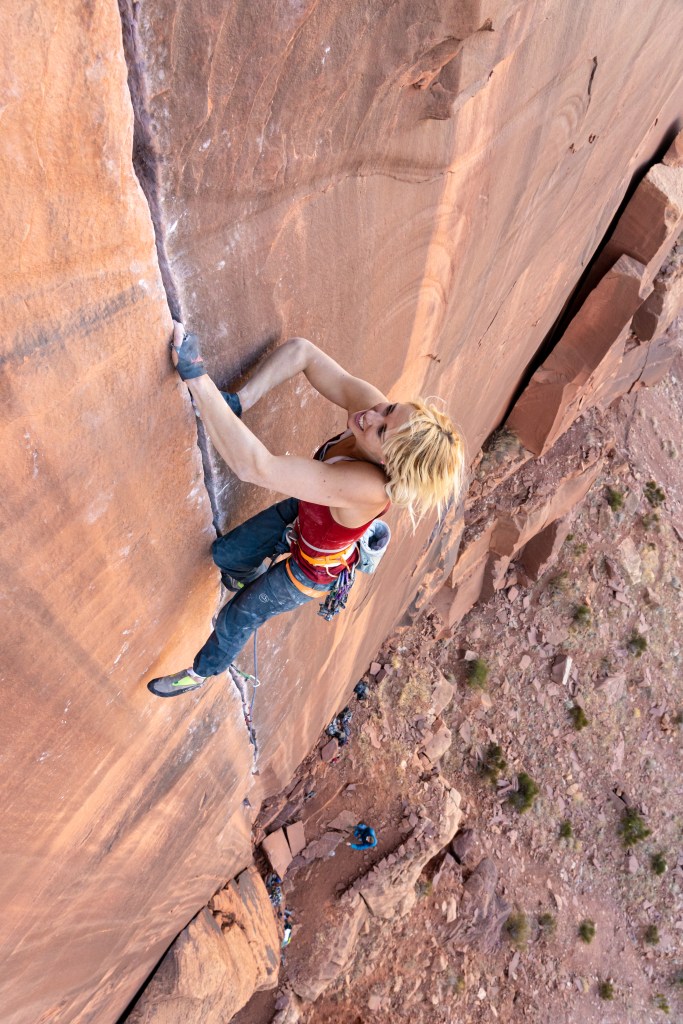 “Closer to the skin is better,” my friend Nick teased on more than one occasion as I strapped on my rubber Ocun hand jammies (protective and grip enhancing crack climbing gloves) for another perfect Indian Creek splitter. Each time I would laugh, roll my eyes, and insist that I agreed, but needed to protect the healing gobis on the backs of my hands from earlier that season. I would stop wearing them soon, just not today.