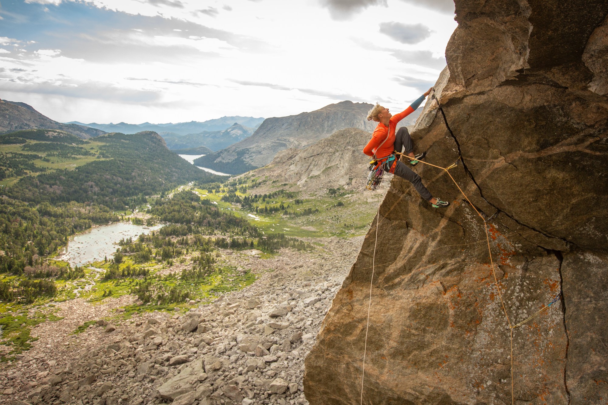 As I stared across the jagged peaks of the Winds, tears began to run down my face. It was then that I realized that I hadn’t felt anything about climbing, truly felt anything, deep in my bones, since April. Now though, standing atop the summit of Mount Hooker for the second time having fought like hell to get here, I felt truly alive in the rarest and most precious sense. Watching sweeping expanses of granite open up all around me, looking at aquamarine lakes teeming with trout, meadows dotted with wildflowers, and boulder fields hiding caves home to scraggly climbers, beauty radiated from every rain-soaked angle and I knew in my heart that of all the infinite places on Earth, in this moment in time I was exactly where I was supposed to be. I saw all my mistakes laid bare before me: every regret, failure, and flaw, and knew that none of them had been enough to stop me from still clawing my way here. Every difficult, beautiful, heartbreaking thing that had happened in the last year of my life as I tried to learn to climb walls, or in the twenty-nine years of my entire life, or in the nearly sixty years since Hooker had first been climbed, had led me to this place, and so that was where I belonged: here in the mountains, on walls, on summits, or anywhere my wildest dreams could possibly imagine myself going.