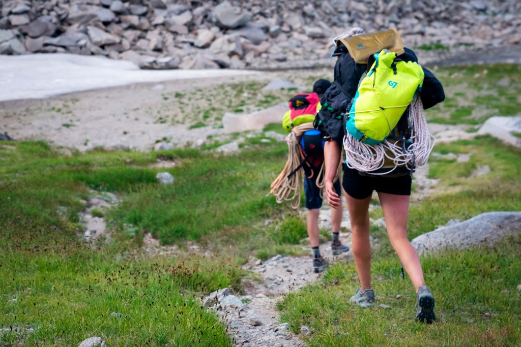 I pushed it out of my mind as we rolled in to Big Sandy Lodge. A friendly cowboy with a gelled English mustache led us out to the barn where we weighed all our packs, around 60lbs per person except for Clatch, who neared one hundred. We slept in a grassy field near the trailhead as the sun dipped behind the mountains, relishing in the cool air that was a welcome reprieve from the previous few months of summer heat. My friends curled into their vans and tents to hopefully dream of shining peaks beyond the horizon, as I tossed and turned with nerves.