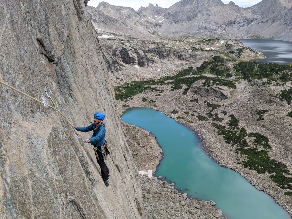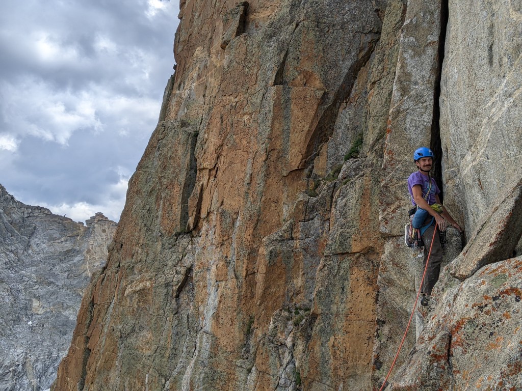 “We don’t have to do this,” Adam cautiously said once or twice when I let it show how much I was struggling. Technically he was right, but in my mind there would be no bailing, not again. I had shied away from this level of challenge my entire life. Every time I had ever tried to climb in the Winds before I had failed. I had been fighting with wall climbing for so. long. It had even been suggested to me in the spring that ‘Maybe I didn’t even really like multipitching’ as a misguided attempt to help me find my way through one of the low points.